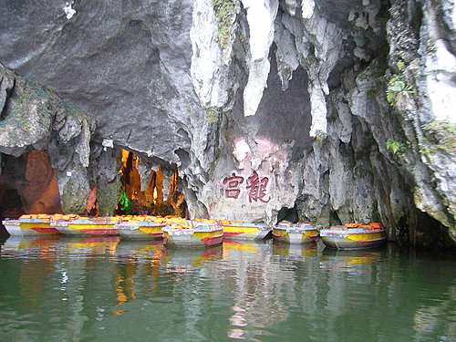 比較起一般的鐘乳石洞,龍宮的參觀方式算是特別的,它是個水龍洞,參觀的時候必須乘坐小船。船上除了船夫外,還有一位隨行的地陪,她會為遊客們解說頭頂上的鐘乳石。一路上我們必須閃避一根根的鐘乳石,因為有的鐘乳石已經長得過長,幾乎就要碰到水了。