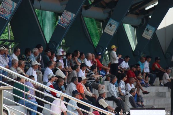 觀眾席上,老年人居多,還有小小孩陪著一起看,聽說是附近居民的基本盤觀眾,好專心的在看比賽。