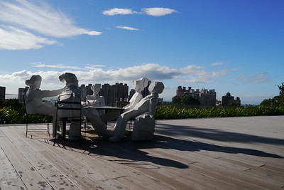 淡水文化藝術教育中心雲門劇場籌建了七年,朱銘美術館特別規劃的「無聲表演《朱銘在雲門白彩人間系列雕塑展》」在劇場室外空間展出,白彩系列的每一個雕塑作品,十足的藝術生活化,與他們互動合影的自不在話下,藝術的氣息輕易的就融入到訪的遊客中。
