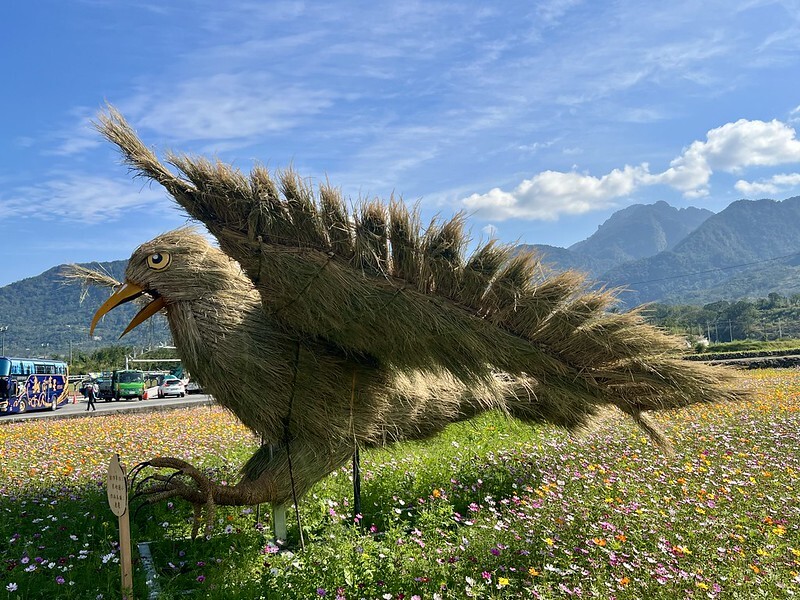 以「動物迷蹤 稻翼之歌 」為主題的第五屆【富里稻草藝術季】,在羅山展售中心後草皮盛大展開 ,超過20組精彩鳥類稻草藝術作品和萌萌可愛的金剛猩猩,分別裝置在鮮豔繽紛的百日草和波斯菊花海中,展期到 2024 年4月30日止,主辦單位是花蓮富里鄉農會。