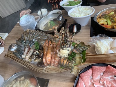 - 慢慢的吃,吃得飽飽的但不撐。沒有下鍋海鮮仍維持著新鮮,海鮮盤底下的冰塊很多,還冰冰的「打包後晚餐繼續吃」,甚少打包的女兒,竟然說她全包了,她可是對不新鮮極過敏的體質,也在晚餐後告訴我打包的海鮮,仍是新鮮好吃。🤤