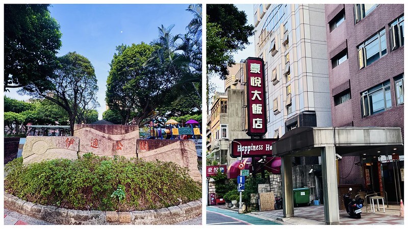伊通公園周邊豪宅大樓林立,街道寬也很美,陪朋友住在豪悅酒店,當一天的松山區居民,超棒的社區。