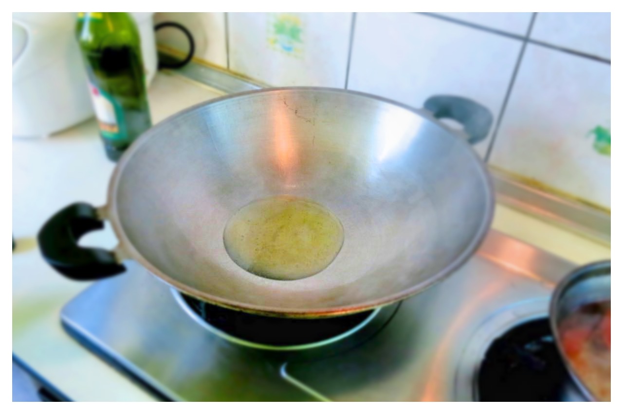 步驟一:全鐵鍋,物理性不沾方式熱鍋後,倒入油