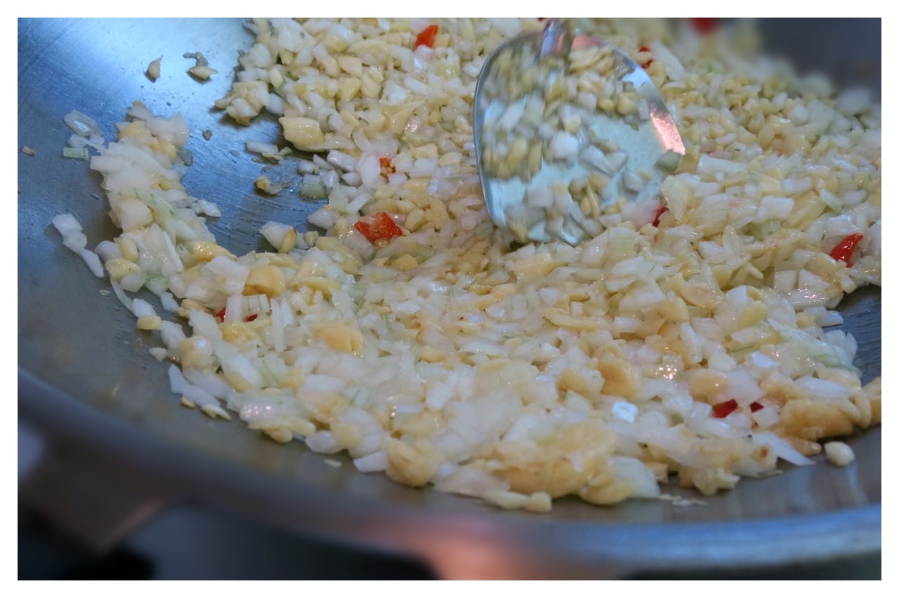 步驟三:加入洋蔥末拌炒