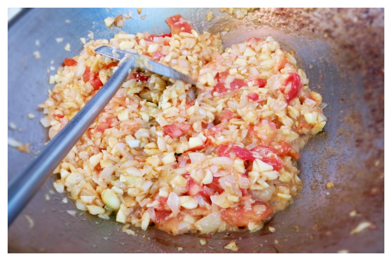 我們照著印傭的作法,猜想是取番茄的鮮甜和茄紅素的營養,每次吃感覺不錯,現在我家冰箱是常備小菜。