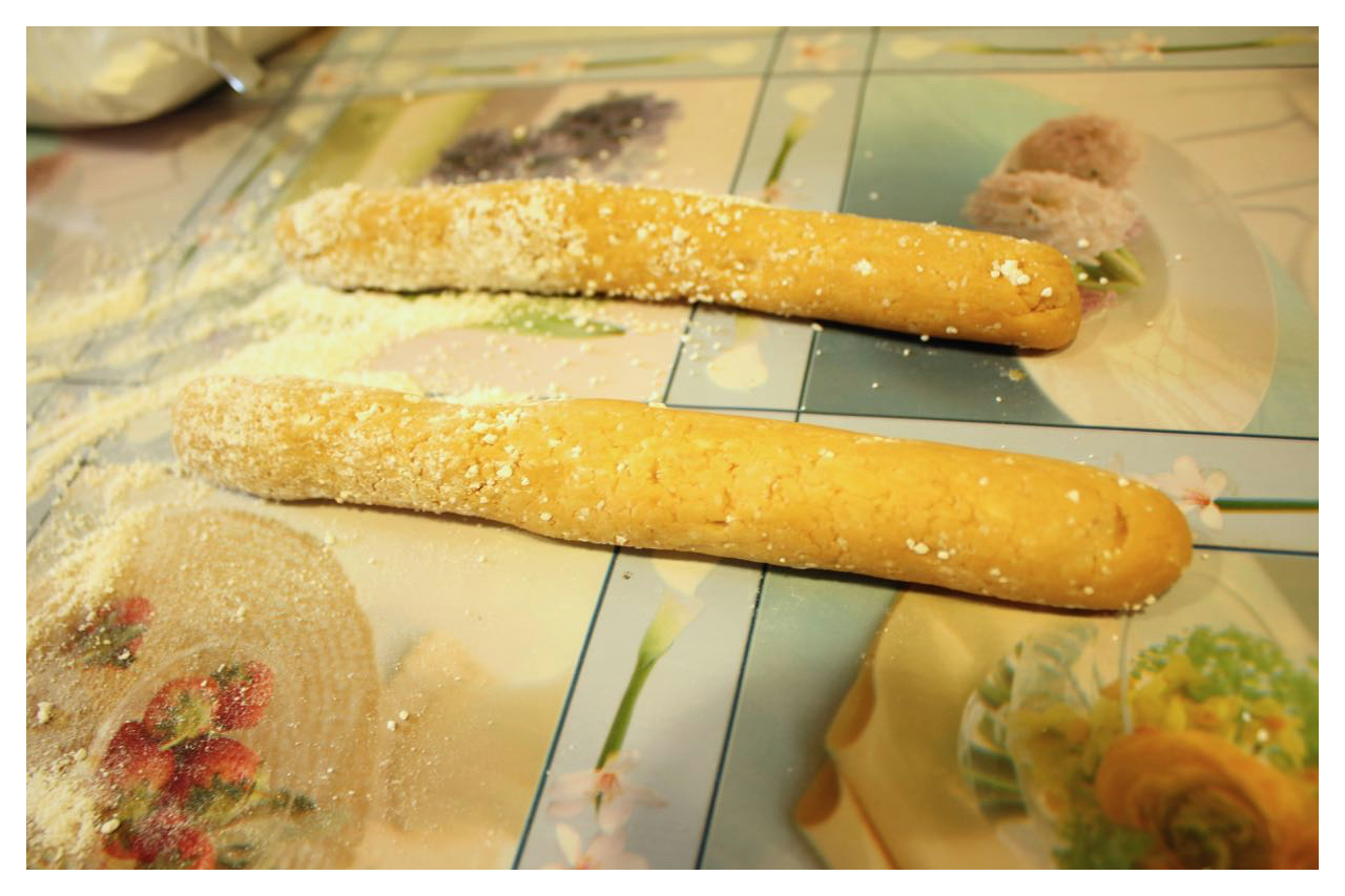 將麵糰分次揉成長條形狀