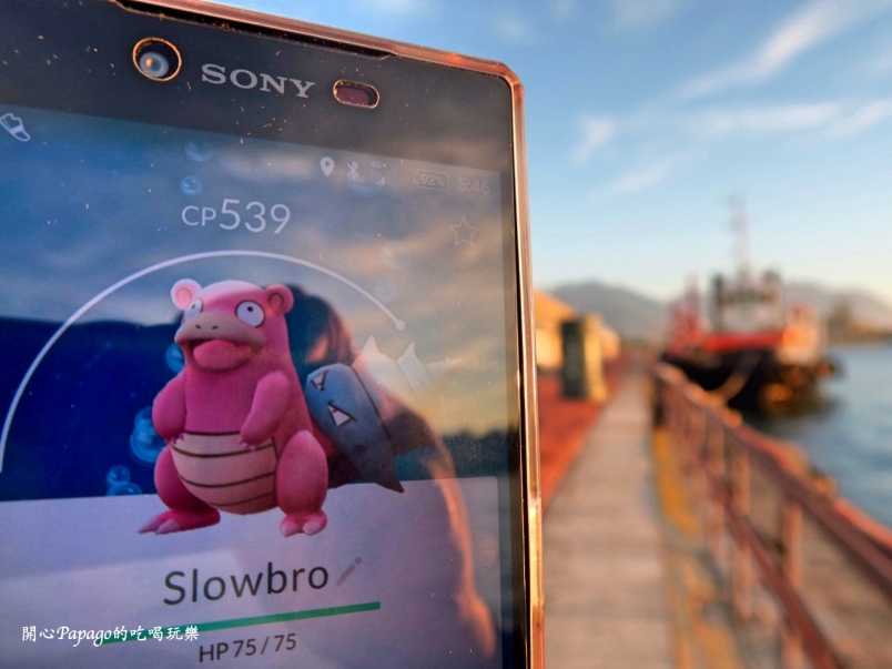 清晨5:20分,我到這裡的時間,85℃咖啡與海霸天餐廳的門都還關著呢?在第一天來的時候,為看日出天不亮就來了,找不到上去的路,隨手玩起寶可夢,幸運捉到寶物,手機時間是早上5:26喔!只見金黃光芒,還未見到太陽升起!