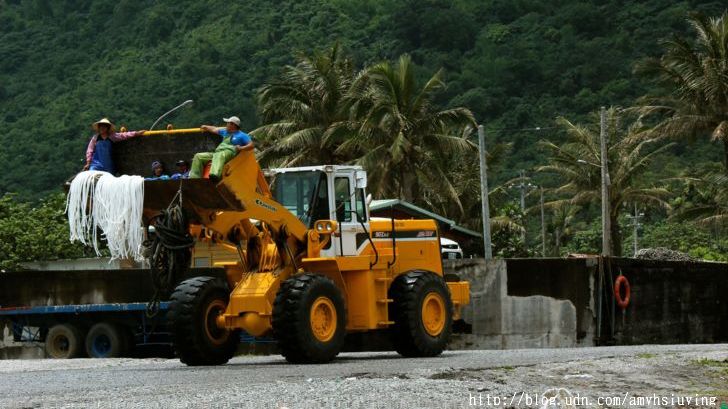 這樣的巨大的怪手車,就這樣開進海邊漁場。