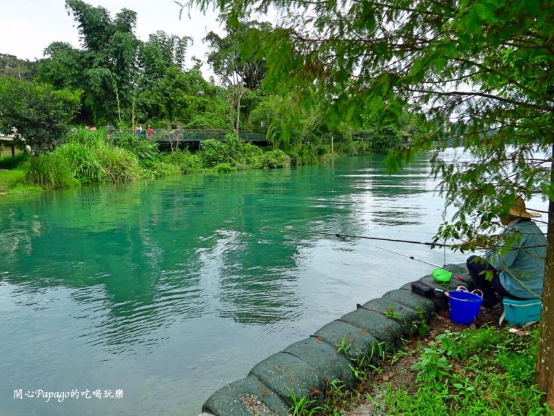 往向山步道的方向,走向下方木棧道的階梯,近距離的接近日月潭,清澈見底的湖邊,落羽松緊鄰湖濱的小花園,釣魚的人早早來垂釣了,悠閒慢活也樂活,每回遇見垂釣的場景,我都會想起小弟,若是他來,肯定垂釣會是他遊玩的第一選擇,看著看著都想念他了。一位老先生釣起一條小魚,太小了,放回潭裡讓小魚繼續長大。