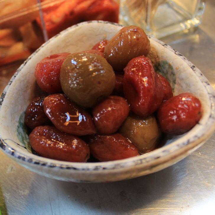看我們開心地品嘗,幾種小菜,吃了還想再吃,小桐一直問,還有沒有想要再品嘗的,他服務到底。除了泡菜還兼賣韓國的醬料,隱藏在市場的異國美食,太美了。