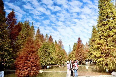 城市裡的楓紅、落羽松同時變色了,還有台灣欒樹樹葉長出嫩芽的黃綠色、欖仁樹的五彩繽紛、鮮黃色的台灣欒樹和水柳樹等等,公園的主角暫時不再是花朵,換成了大樹了! 2026年1月初,溫暖陽光露臉的好天氣,台北...