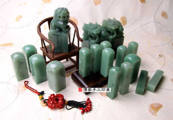 傳家手工印章實際成品:頂級東菱玉家族 (手鐲及蘋果綠等級)