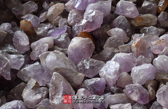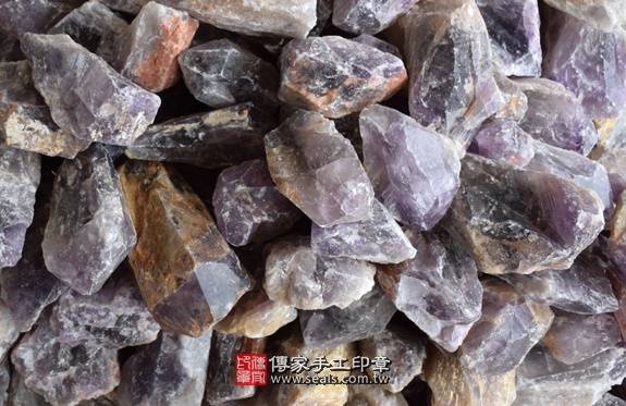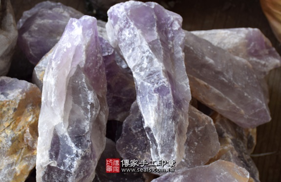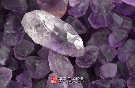 - 傳家手工印章嚴選高級「頂級冰種紫水晶印章」。水晶的硬度很硬,大約是7度,是頂級的印材之一。紫水晶因其產地、成色的不同會展現出不同深淺層次的紫色,所以天然紫水晶的紫色從最淺的淡紫到非常濃豔的深紫都有,天然形成的紫水晶因其自然界的影響,有時會出現顏色不均勻的現象。