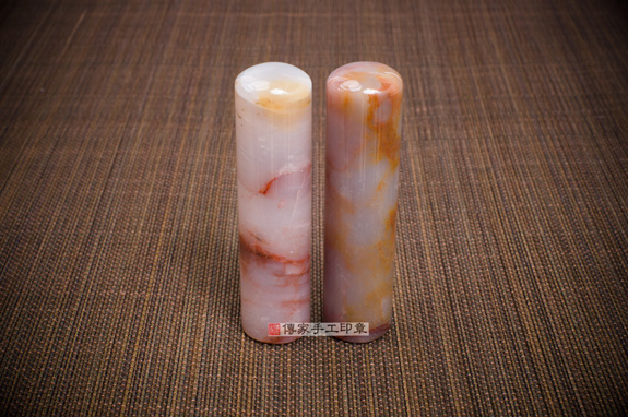 - 傳家手工印章嚴選高級「三彩漢玉」、又稱「三彩玉」。三彩漢玉的硬度很硬,約在7度。有極高的收藏觀賞和投資價值。三彩玉具備半透亮的質地、顏色、光澤都顯為少見,特別其紅、黃、白三色集於一身,更為中國人所喜歡。
