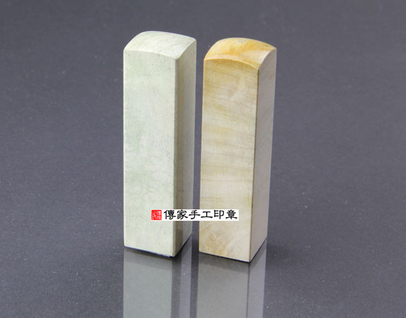 - 木化石開運日本公司印章,雙章,一圓一方。圓章象徵「財源滾滾」,適合當做銀行開戶使用。方章象徵「方方正正」,可以在簽約、購買房子時使用。
