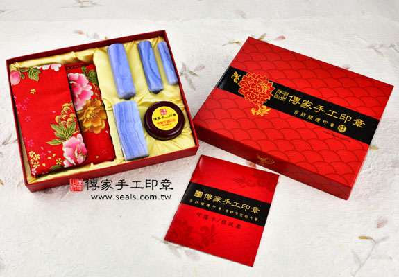- 傳家手工印章━「巴西頂級藍紋玉開運日本印章的實際成品」。包含: 巴西頂級藍紋玉日本印章、全手工印章外出袋、印泥、傳家手工印章的保證書、精美中國風的印章外盒(印盒有四大風水神獸:左青龍、右白虎、前朱雀、後玄武)。