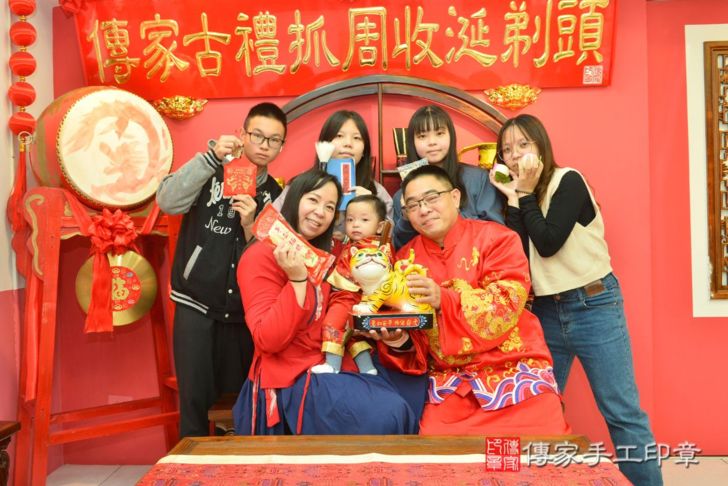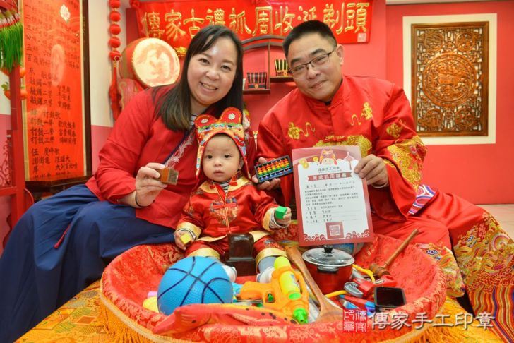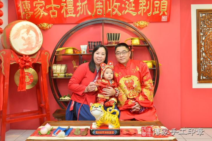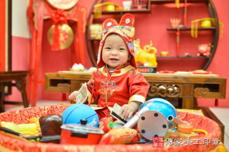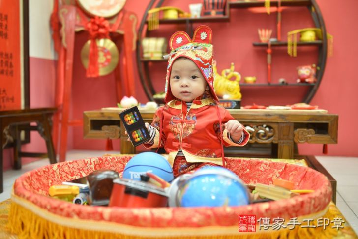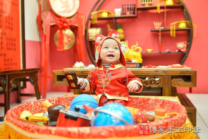 台中市北區黃寶寶抓周推薦:嬰兒來店抓周度脺,專業嬰兒古禮抓周流程儀式吉祥話、抓周道具物品24種、攝影拍照。爸媽寶貝三人穿古裝禮服「日式、中式、韓式。款式200套」抓周證書,DVD光碟。2022.12.17