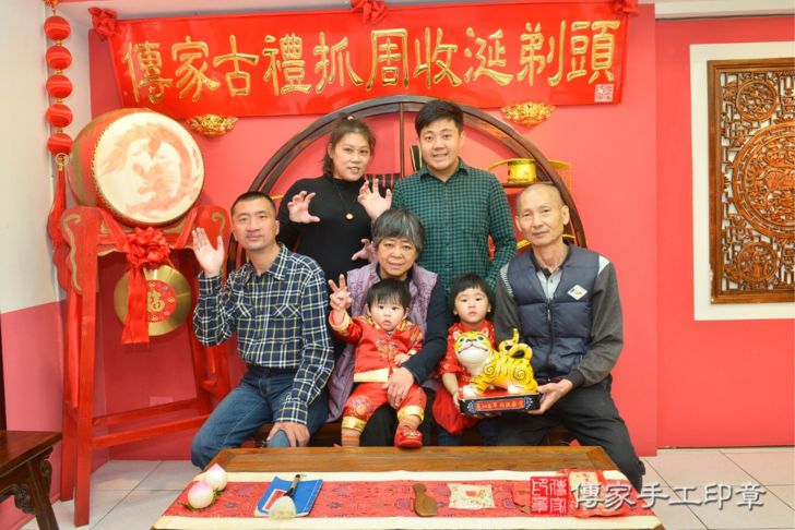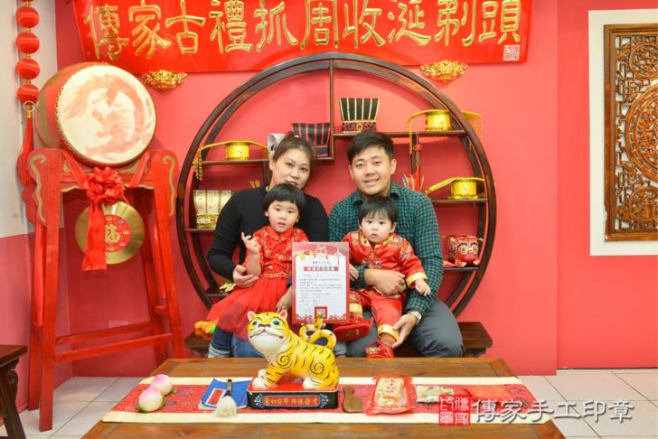 台中市北區倪寶寶抓周推薦:嬰兒來店抓周度脺,專業嬰兒古禮抓周流程儀式吉祥話、抓周道具物品24種、攝影拍照。爸媽寶貝三人穿古裝禮服「日式、中式、韓式。款式200套」抓周證書,DVD光碟。2022.12.26