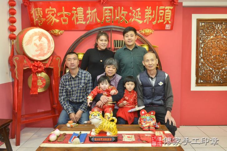 台中市北區倪寶寶抓周全家福大合照。