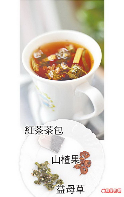 材料:山楂果3~5顆、益母草1錢、紅茶茶包1個。
