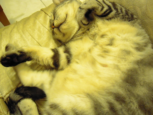 一到家..牠諂媚的窩在我先生的大腿上任憑我的討好就是擺足了一副....哼...一個主人想溜貓....