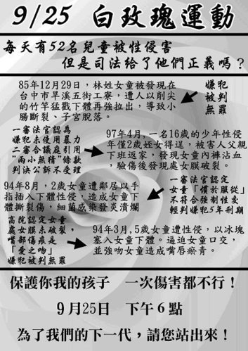 司法配不上純潔的孩子,請響應<白玫瑰運動>