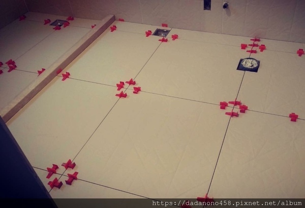 地磚的十字縫.一定要從落水頭正中央開始分線