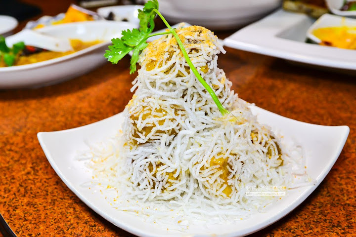 將整塊的五花肉,連續不斷的一刀切出來四方形的螺旋,然後再五花肉的下面墊上梅乾菜做出這寶塔的造型,真是令人歎為觀止,搭配梅乾菜吃起來軟Q不膩口,周圍點綴上翠綠的湯匙菜和枸杞淋上勾芡湯汁,好看又好吃!