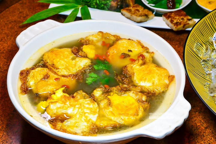 荷包蛋吃起來有炸過蓬鬆的口感,還吸收了麻油雞酒的香氣和甘甜味,這荷包蛋吃起來一點都不簡單