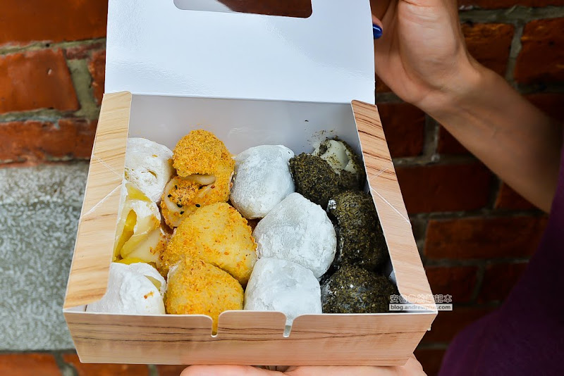 紅豆和綠豆口味的包餡麻糬則是滾上薄薄一層糯米粉,這樣麻糬才不會彼此黏在一起