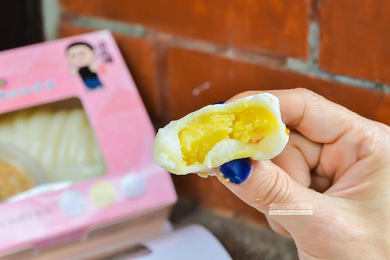 綠豆內餡搭配麻糬皮,感覺還有點像在吃中秋月餅哩!