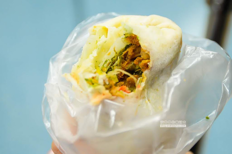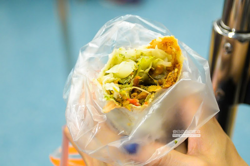 雖然沒有馬上吃,但是潤餅皮也沒有變得濕濕爛爛的,一口咬下去吃到油條的酥脆感,肉鬆香和高麗菜柔軟口感