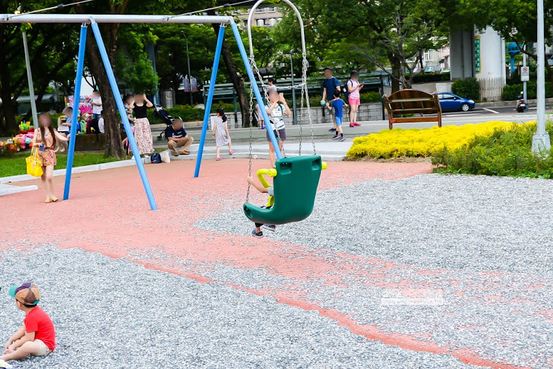 飛天鞦韆區,有三組盪鞦韆,也設有適合小小孩玩、有座椅式的鞦韆