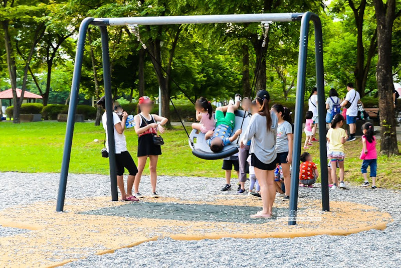 旁邊還有比較矮的大坡面溜滑梯,爸媽就能顧到較小的小孩了
