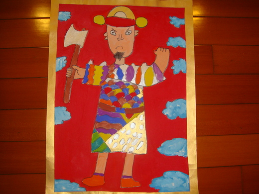 這畫用色鮮豔,門神的神情威武,畫的真好。
