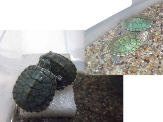 第一次買的這二隻烏龜是有名字的一隻叫深綠、另一隻叫小綠,