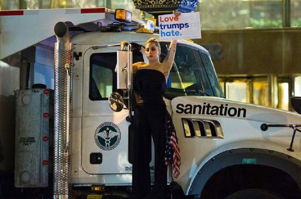 女神卡卡Lady Gaga凌晨舉著Love trumps hate的標語在川普大樓外抗議。而「美國隊長」克里斯伊凡 Chris Evans也發文:「這對美國來說實在是羞恥的一晚。我們讓一名仇恨煽動者來領導我們偉大的國家,我們讓一個惡霸來設定我們的方向。我超絕望。」