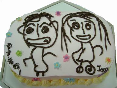 別出心裁,找一張兒子畫的圖,請師傅做在蛋糕上。