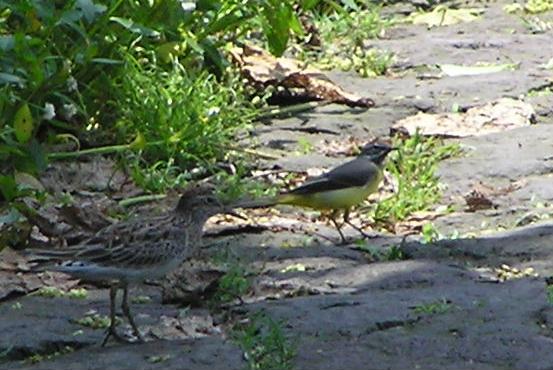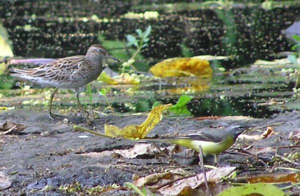 尖尾鷸與灰鶺鴒同遊冷泉