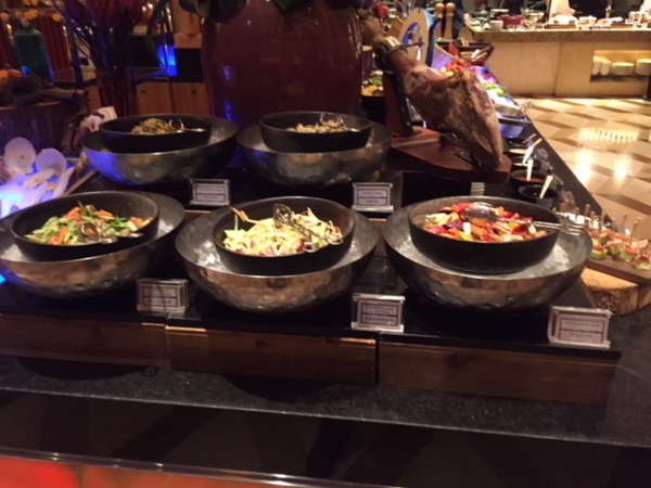 鳴詩的生菜沙拉區很豐富,除了生菜,還有多種涼扮的前菜;食材當然不能小器,煙勳鮭魚少不了;整隻西班牙火腿,薄削肉片加上哈蜜瓜,是必定要嘗的美味 。青菜呢,我的注意力向來集中在蘿蔓,只要有整顆蘿蔓就很滿足。蘿蔓甘脆鮮甜,少少加上起司粉,就很夠味。