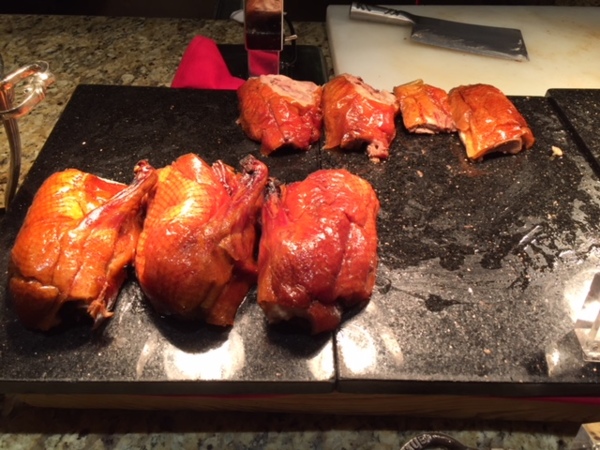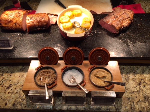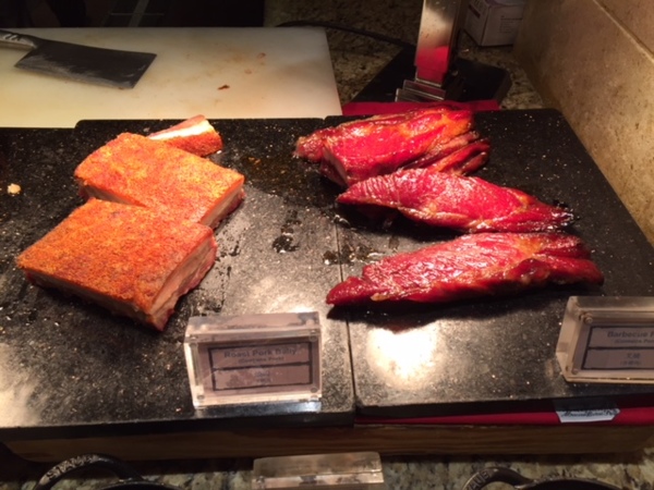肉類主食是自助餐廳的決勝項目。鳴詩有叉燒、牛排、烤豬腿、燒肉、燒鴨等。比較喜歡燒肉和燒鴨。羊排很好,總是出現在印度料理區。