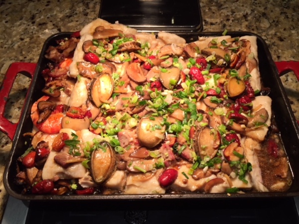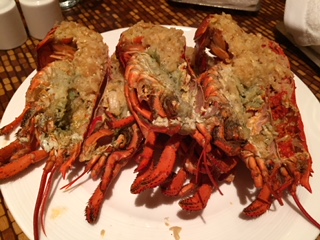 除了餐檯上的食物,大廚也為客人現場烹調。海鮮粥用多種海鮮入粥滾煮,包括整顆鮑魚,味美料多。最厲害是蒜蓉蒸龍蝦,一隻龍蝦剖兩半後清蒸,不限數量;每次來都要吃至少一隻,然後才忽然想起來,自己尿酸高不宜多吃。