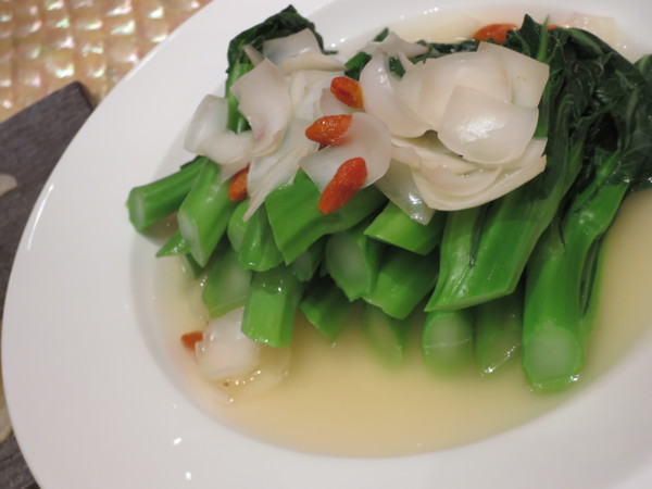 另一道蔬食是「百合杞子浸時蔬」,今天選的是菜心。整道菜就是清爽,白紅綠三色真是賞心悅目,吃在口裡則是鮮嫩。