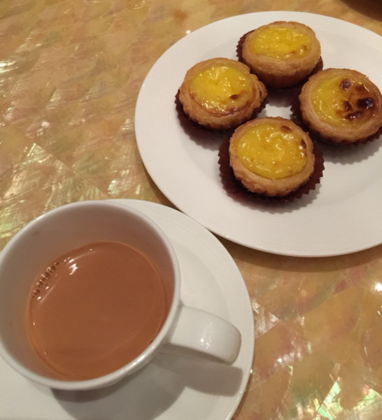 最後收尾的「餐後心意」,廚師贈送的小點,今天是小葡撻。尺寸縮小了,皮反而更顯酥鬆。另外就是小杯奶茶,茶濃奶香,為今天的午餐閉幕。