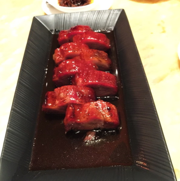 廣東館子少不了的菜式就是叉燒。叉燒雖然普遍,但廚者自有口味拿捏,食客則甜鹹各有所好。叉燒非常重要是「瘦包肥」,油脂包在瘦肉中間,瘦肉嫩滑但又不油膩。今天的「玫瑰蜜汁叉燒」肉質軟嫩,色澤紅亮,非常驚豔的好吃。雖然日前才剛吃過有「叉燒代名詞」之稱的香港再興燒臘的叉燒,但今天「8」的叉燒還是更為勝出;當然價錢也相差一截。美食做到普及和平民化最為不易,我想,香港再興的叉燒自然是好吃,「8」的叉燒小量製作與供應,得以精挑細工慢做,自然有更好的結果。