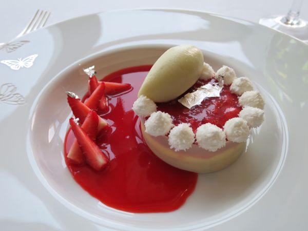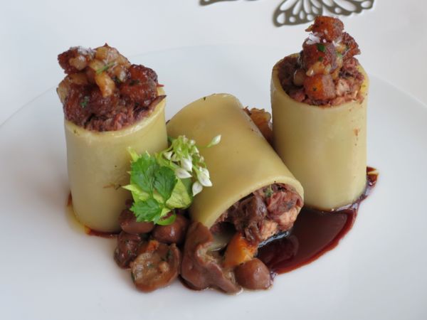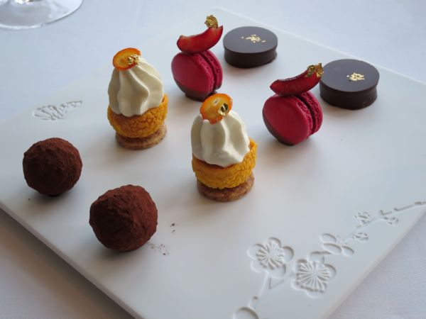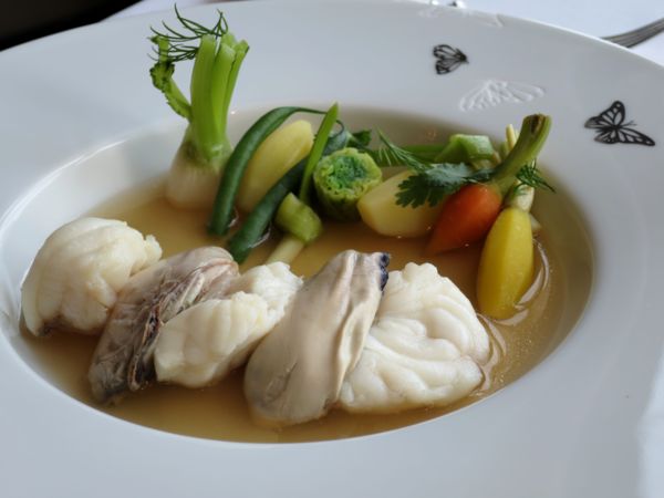 很顯然御膳房的知名度不如米其林三星的「天巢」;御膳房觀光客不多,可以理解,對於時間有限的觀光客,選擇最有代表的豪華午餐,多半會先挑米其林三星的天巢。反而我在天巢遇到並不喜歡的主菜,一再嘗試其他餐廳。 這次御膳房選的兩道主菜,一是鮟鱇魚和法國蠔,真是精彩的組合,清淡雅緻,廚師的創意令人激賞。另一道牛尾麵管,醬燒的牛尾塞進粗管麵,只是再一次得到驗證,我並不是那麼喜歡牛尾,即便它總是有著濃郁豐厚的滋味。