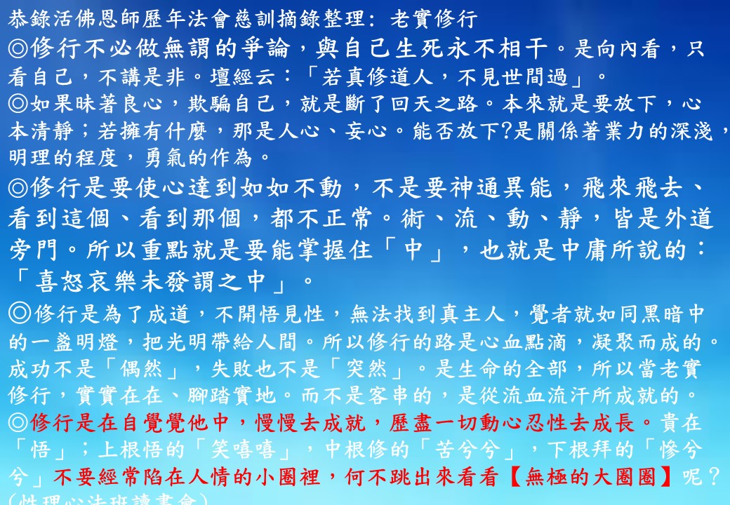 活佛恩師慈訓摘錄整理:老實修行