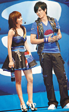 昨晚羅志祥、李準基和黃曉明獲贈百事員工卡,正式成為百事巨星,小豬和Jolin在現場不時交耳說悄悄話,被香港媒體認為是非常甜蜜投契的緋聞男女。