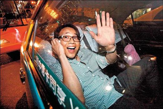 15分鐘的路程,陶喆花了1小時才到,記者上前採訪,原本癱坐的他先是一驚,接著硬擠出笑容對鏡頭打招呼,然後換搭另1輛計程車,到北市信義路上的「Joyce East」餐廳,過馬路時還把紅酒抱得緊緊的。