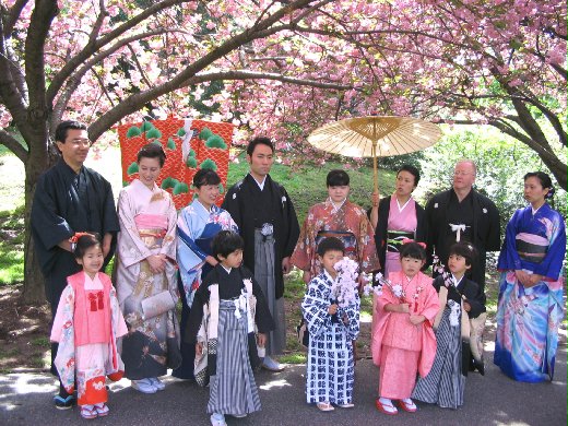 乘坐一大段地鐵後,終於來到植物園。一進大門,迎接我的是兩叢茂密的白色櫻花,之後往內走到大片綠草坪,則是一大片繽紛燦爛的粉紅色櫻花。雖看到的都是白色或粉色櫻花,但事實上是數十種不同的櫻樹,只可惜我無法一一分辨,不過能夠欣賞,並靜靜的漫步在櫻樹下,我已經覺得很滿足了。我還看到幾個日本家庭盛裝打扮出遊,真是應景,也引起其他遊人爭相拍照!